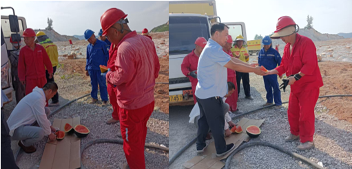 京山京安爆破公司組織分管領(lǐng)導(dǎo)和分工會(huì)委員開展了為一線員工“送清涼、保安康”關(guān)愛活動(dòng)。在爆破施工現(xiàn)場,公司為施工作業(yè)人員送來了、清涼解暑的飲料、西瓜,防暑必備的藿香正氣水、仁丹等。同時(shí),進(jìn)一步采取扎實(shí)有效的措施,錯(cuò)開高溫時(shí)段精心組織施工,加強(qiáng)防中暑應(yīng)急處置培訓(xùn)等,努力為職工辦實(shí)事、解難題,以增強(qiáng)員工的安全感、幸福感和歸屬感,確保員工安全渡暑。