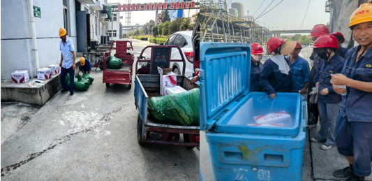 為確保檢修任務(wù)按期完成,保障后期生產(chǎn)裝置安全穩(wěn)定運(yùn)行,檢修的職工們正面臨高溫與高處作業(yè)的雙重“烤”驗(yàn),身著安全防護(hù)器具,頭戴安全帽,頂著塔內(nèi)密閉空間的熱氣和難聞的硫磺氣味,輪換著進(jìn)入塔內(nèi)作業(yè)。凱暉化工為保障職工在戶外作業(yè)環(huán)境安全,合理調(diào)整作業(yè)時(shí)間,針對(duì)此次高溫季節(jié)檢修工作的特殊性,工會(huì)提前謀劃、周密部署,制定了“送清涼”活動(dòng)方案。根據(jù)每天參與檢修的人員,實(shí)地了解職工需求,采購了冰鎮(zhèn)礦泉水、冰棒、西瓜、藿香正氣液、人丹等防暑降溫物資,確保物資“精準(zhǔn)送達(dá)、按需分配”。6-7月“送清涼”慰問對(duì)象達(dá)1876人次。